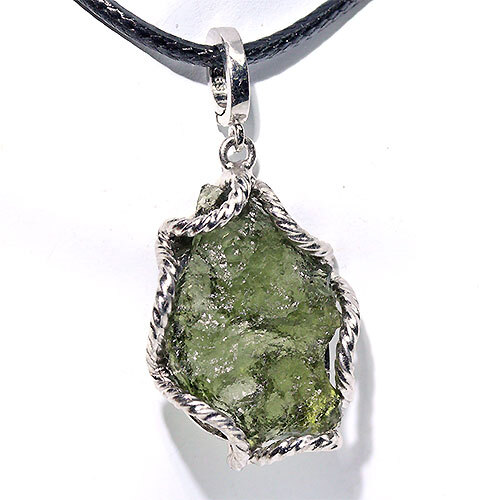 - 〔J361-2〕チェコ産 天然モルダバイト sv925 ペンダントトップ Moldavite モルダウ石
