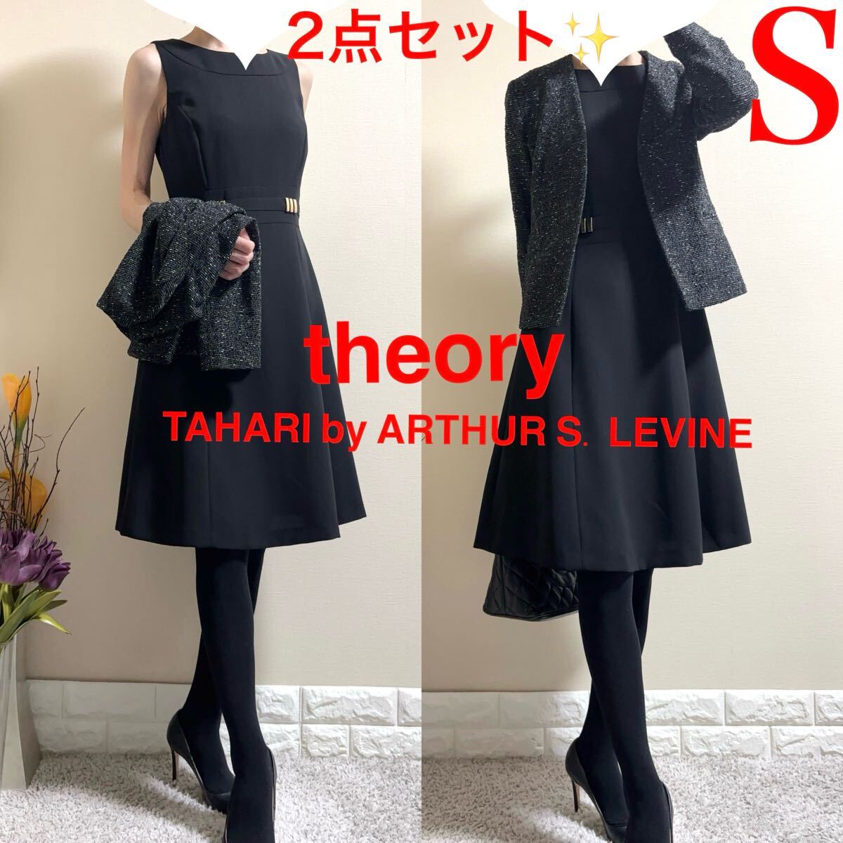 - S スーツ!セオリー theory ツイードジャケット タハリ ワンピース 黒 七五三 入学式 卒業式 入園式 卒園式 通勤