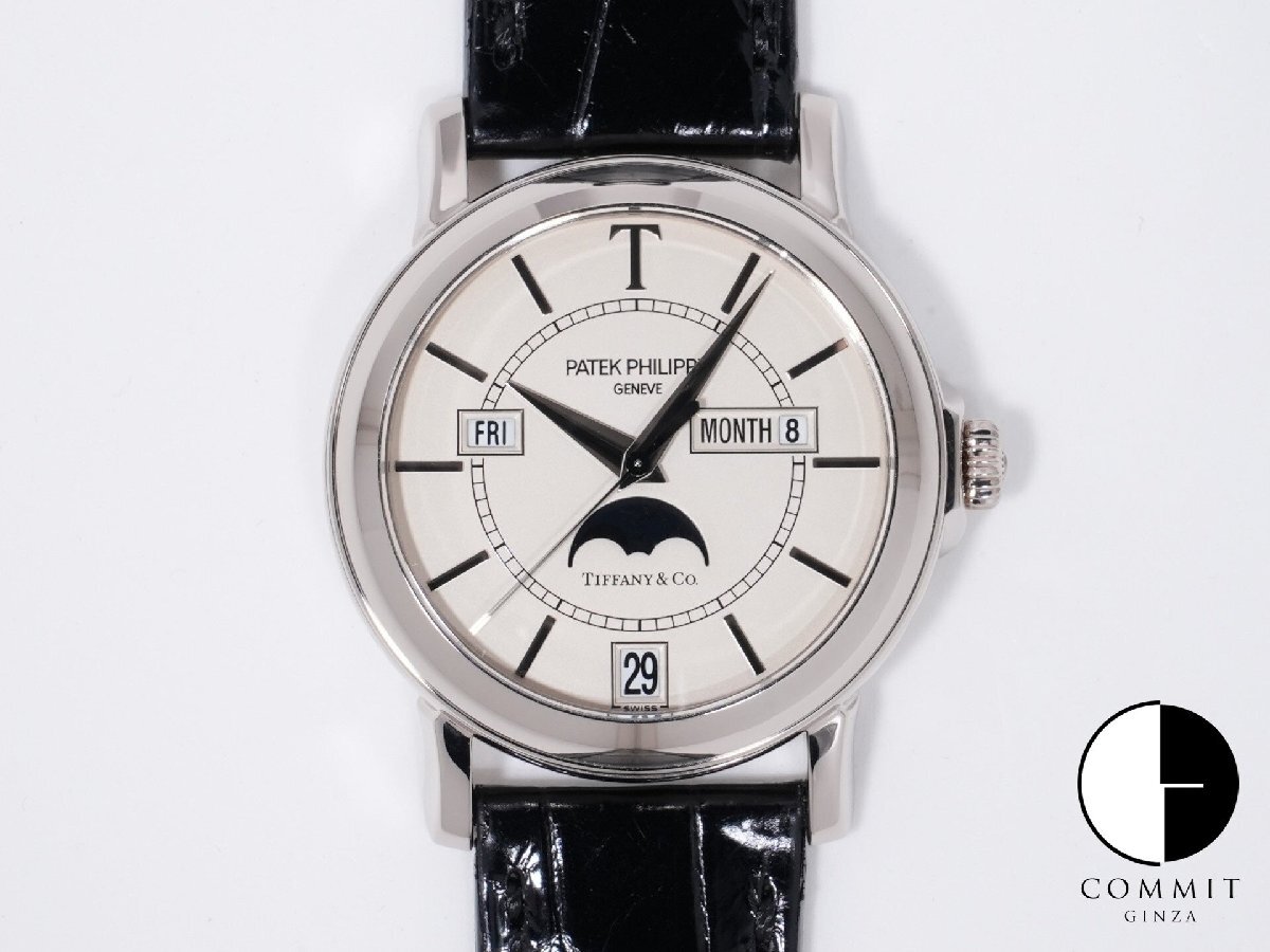 2001年に「TIFFANY&CO.」とのパートナーシップ150周年を祝い「T150 Ref.5150」がハンターケースにアニュアルカレンダーを搭載し18KYG、18KRG、18KWGで各素材150本、限定450本で発売されました。2025年8月にメーカーにてオーバーホール、外装仕上げ済の商品になりますので全体的にキレイな状態です。革ベルトも純正未使用に交換しております。ここのところ市場での出回りが少なく、探されている方には特にオススメいたします。※内箱に劣化が見られます。 ■ダイヤル