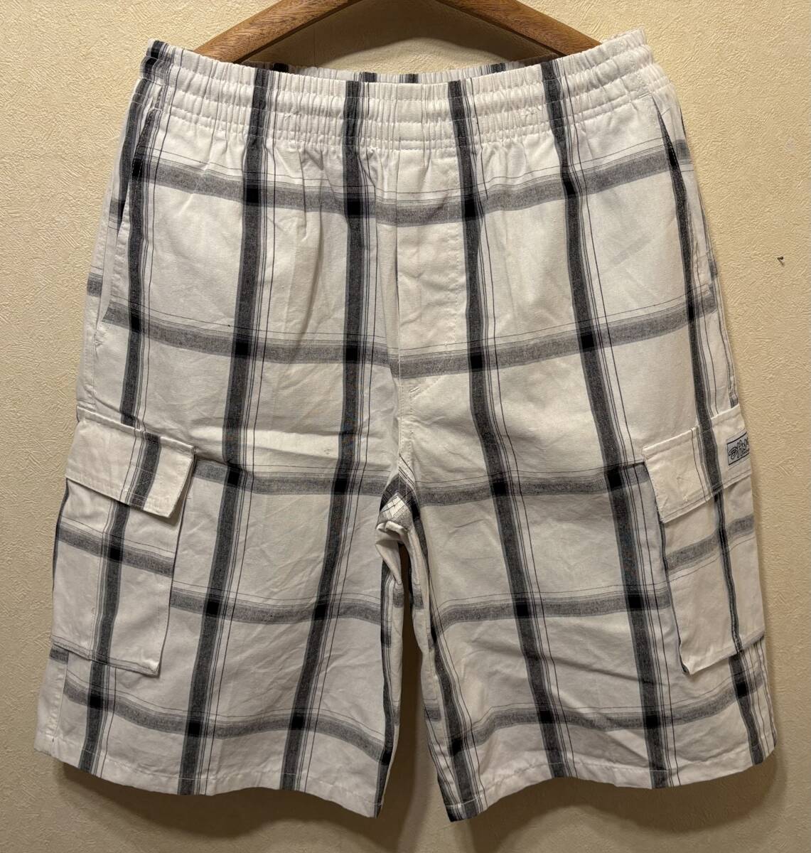 > 美品レア00sオールドSHAKAカーゴ付ショーツM~Lジョーツ白パネル黒チェック柄オンブレ希少モノトーンy2kストリート00年代2000sビンテージ90s