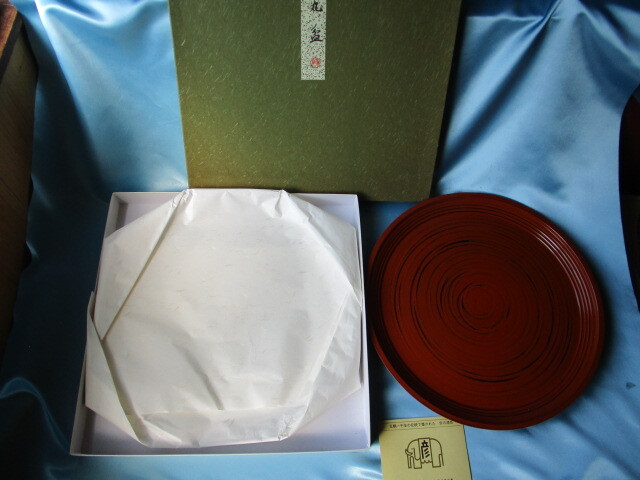 - 平安 象彦 根来 ロクロ目 丸盆 大 36cm 未使用品
