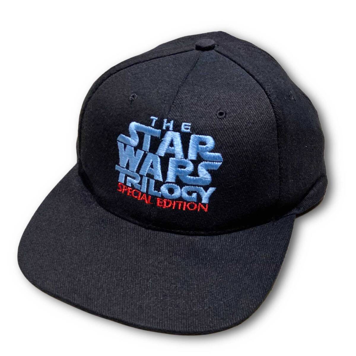 > 希少 デッドストック 90s 1997 STAR WARS スターウォーズ TRILOGY ロゴ刺繍 ベースボールキャップ CAP 帽子 黒 ブラック