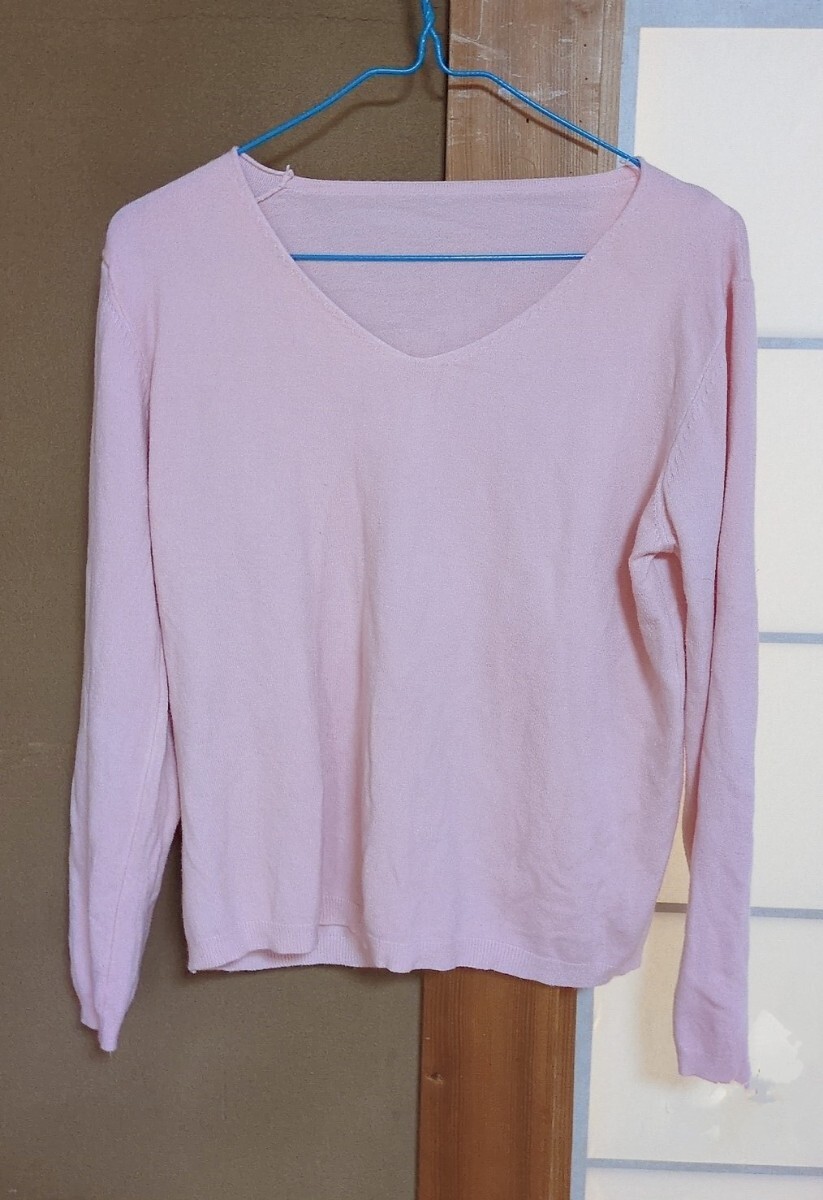 - フェミニンラウンドネックピンクTシャツ 長袖