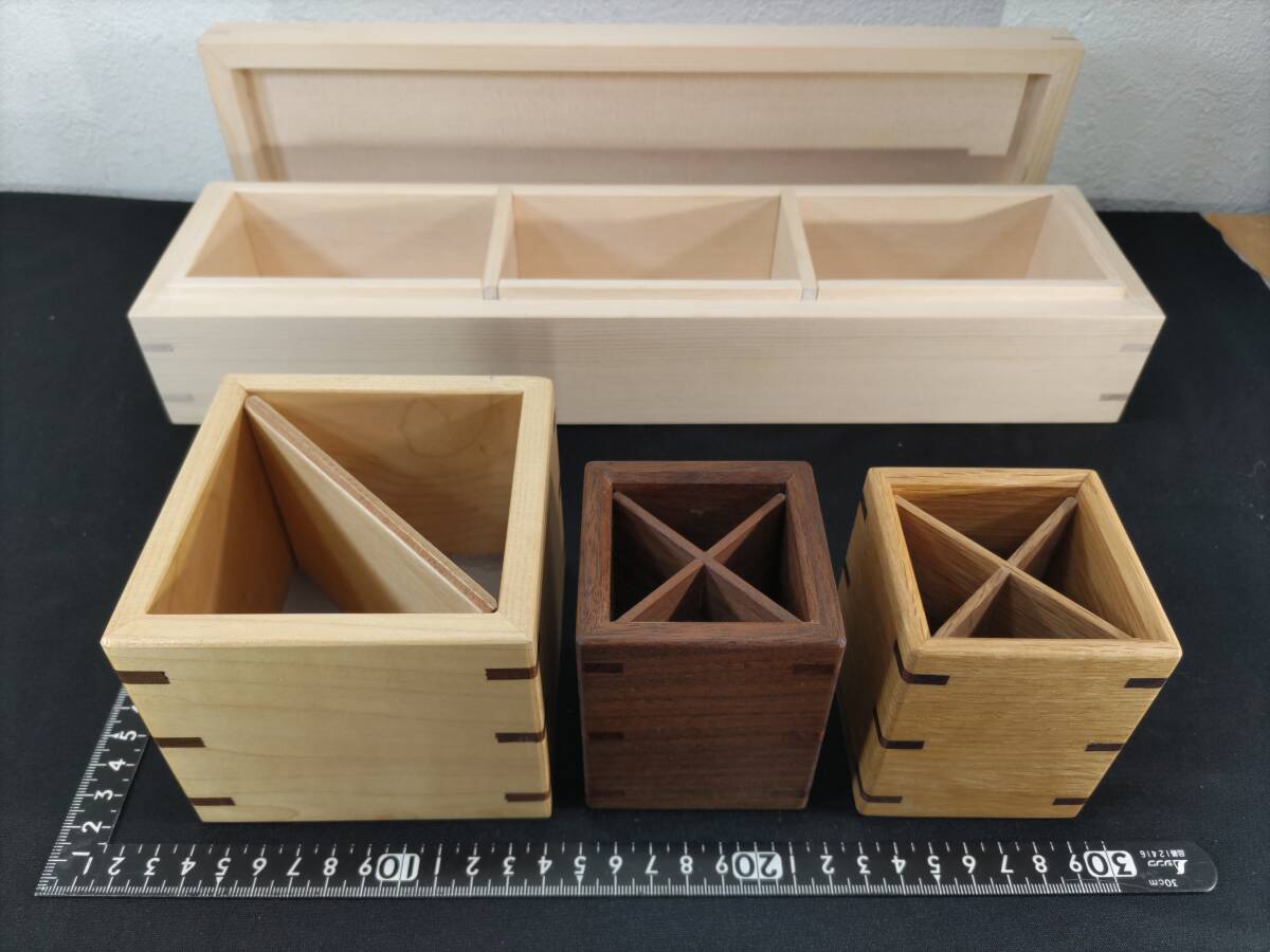 - ■送料無料!■まとめて■家具・木工の町・旭川・木製■木箱■小物入れ■デイスプレイ■コレクションケース■ペン立て■4点セット!