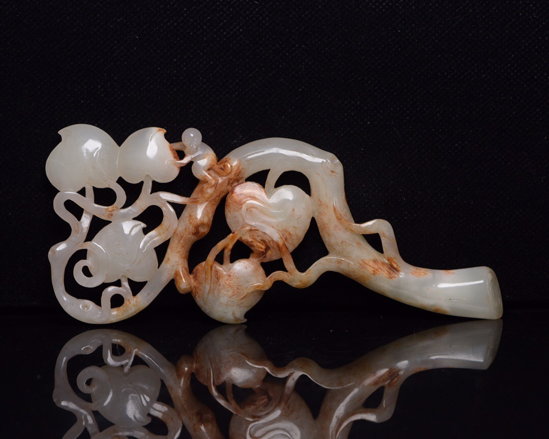 - 『館蔵珍品 和田玉製 細密彫 靈猴獻寿 置物 賞物』稀少珍蔵品 古賞物 貴重物品 収蔵品 中国古美術 時代物 古董品