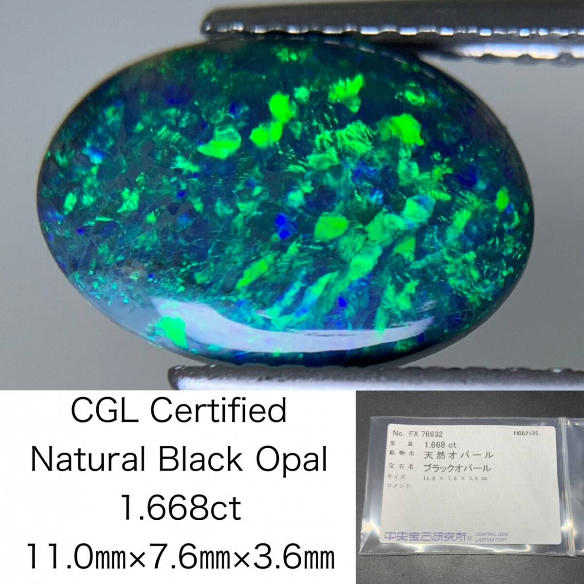 > ブラックオパール 天然 1.668ct 中央宝石ソーティング付き 11.0×7.6×3.6 ルース( 裸石 ) 6453Y