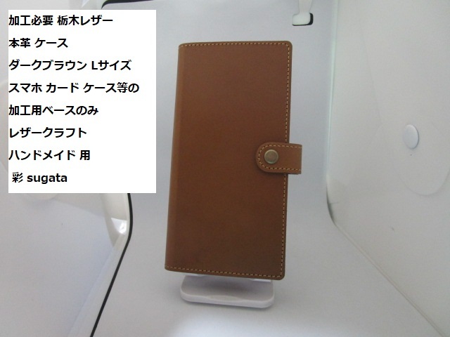 - 加工必要 栃木レザー 本革 ケース ダークブラウン Lサイズ スマホ カード ケース等の加工用ベースのみ レザークラフト 彩 sugata ★