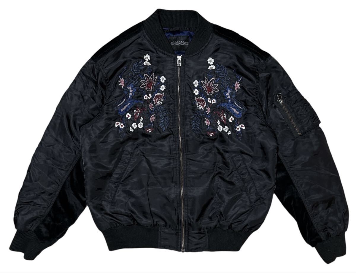 - ▲ ROSE BUD COUPLES ローズバッドカップルズ ▲ フラワー刺繍 ベロア×ナイロン切替 MA-1 MA1 ミリタリー ボンバージャケット ブラック F