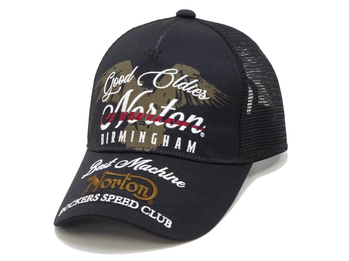 - ノートンモーターサイクル メッシュキャップ Norton 帽子 イーグル ロゴ刺繍 242N8709B ブラック 新品
