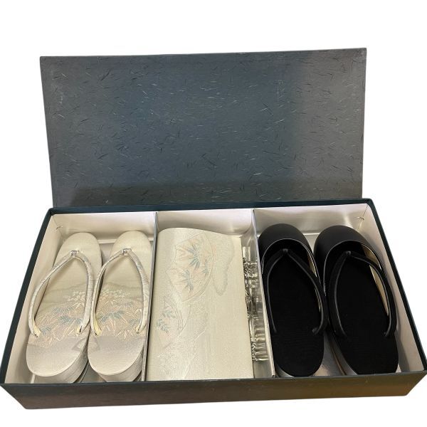 - 【中古】和装 フォーマル 冠婚葬祭用 本ワナ草履(防寒)・バッグ 3点セット 外箱入り 長期保管品◆L91-012