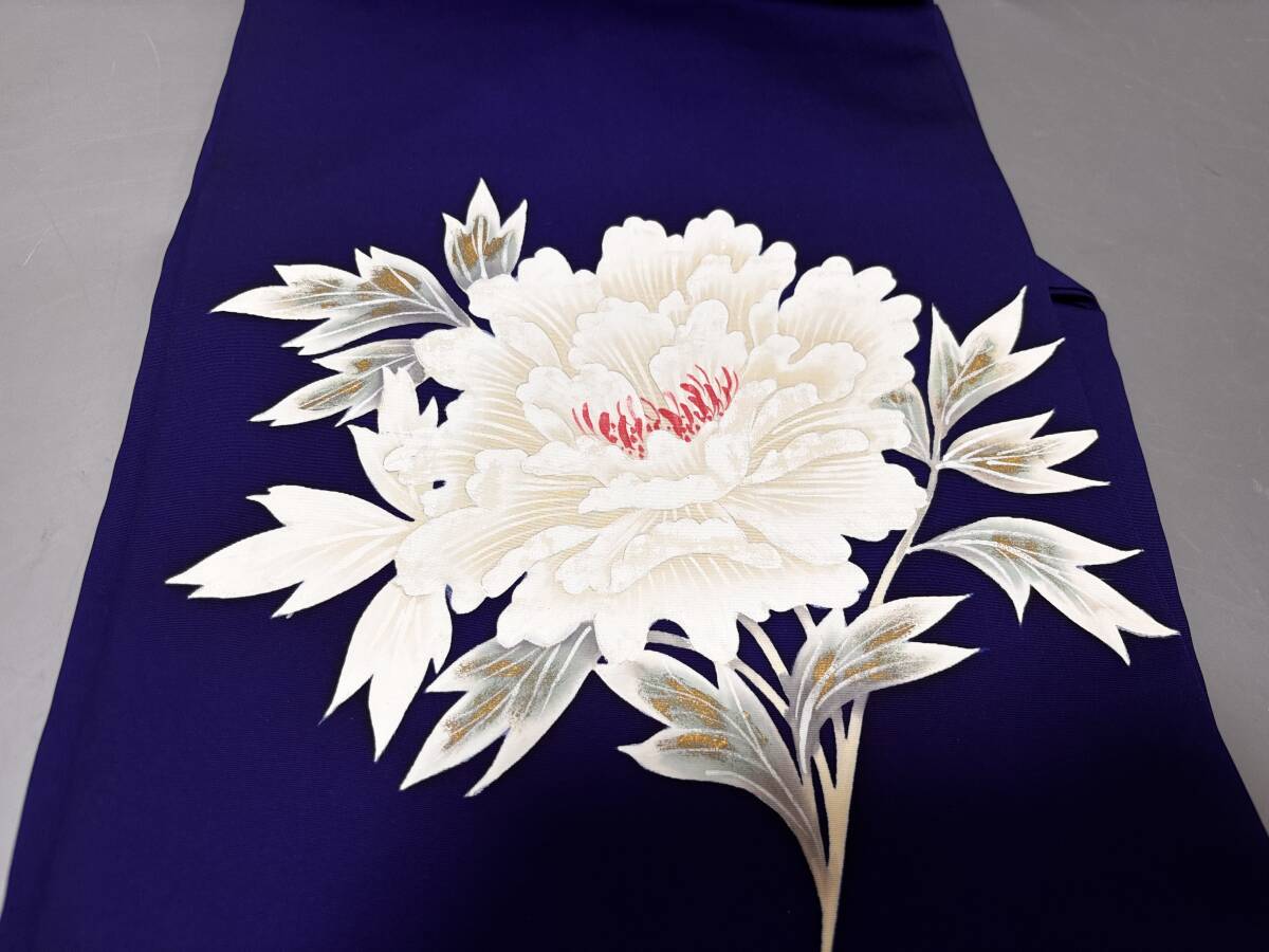 > d4627◆未使用◆九寸名古屋帯 牡丹柄 青 名古屋仕立て◆長さ358cm