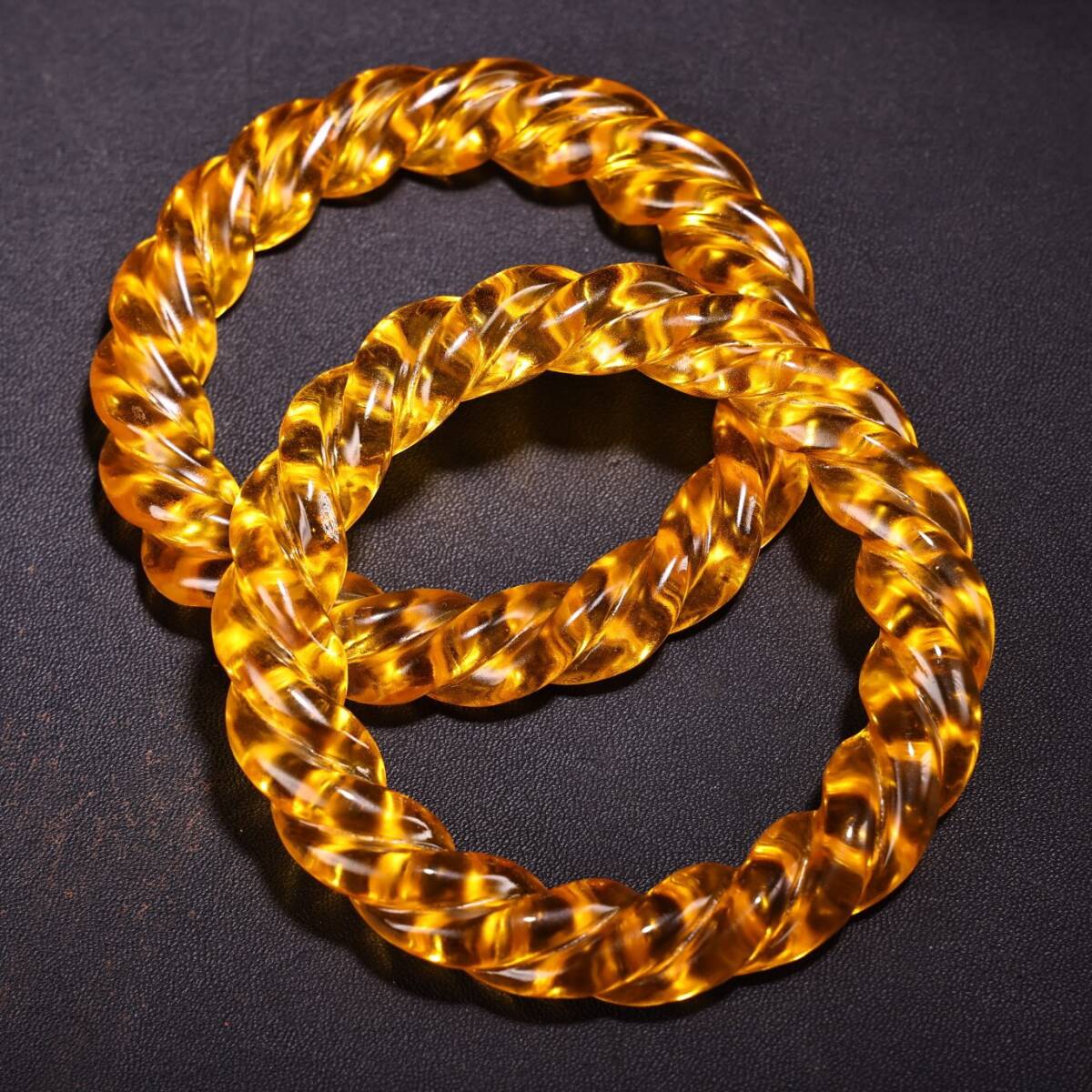 - 【超珍館蔵】黄寶石細密彫 腕輪一對 彩繪 漆器箱付 根付 裝身具 古賞物 古董品 古美術品 時代物 旧家蔵出 稀少珍蔵品