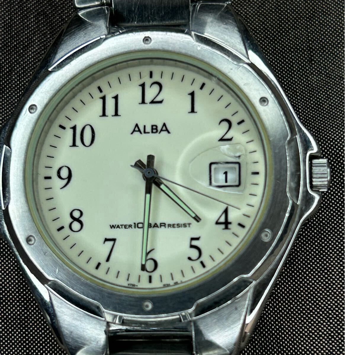 - ALBA クオーツ 10BAR カレンダー付 一部欠けあり used 電池交換済み