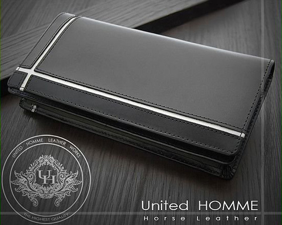 - 【unitedHOMME】馬革×牛革クロスラインデザイン紳士長財布■ホワイトライン×1個