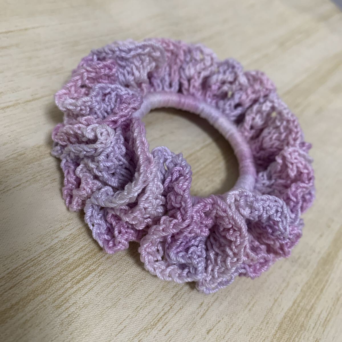 - 【d22】かぎ針 紫陽花 パープル×ピンク ミックス レース糸 フリル シュシュ