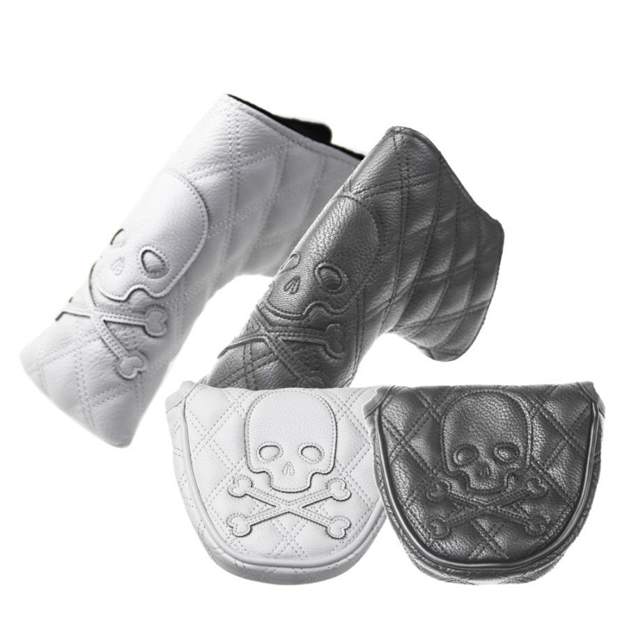 - ゴルフヘッドカバー パターカバー ピンタイプ用 マレット用 キャメロン スパイダーパター オデッセイに適合 マジックテープ スカル 黒 白