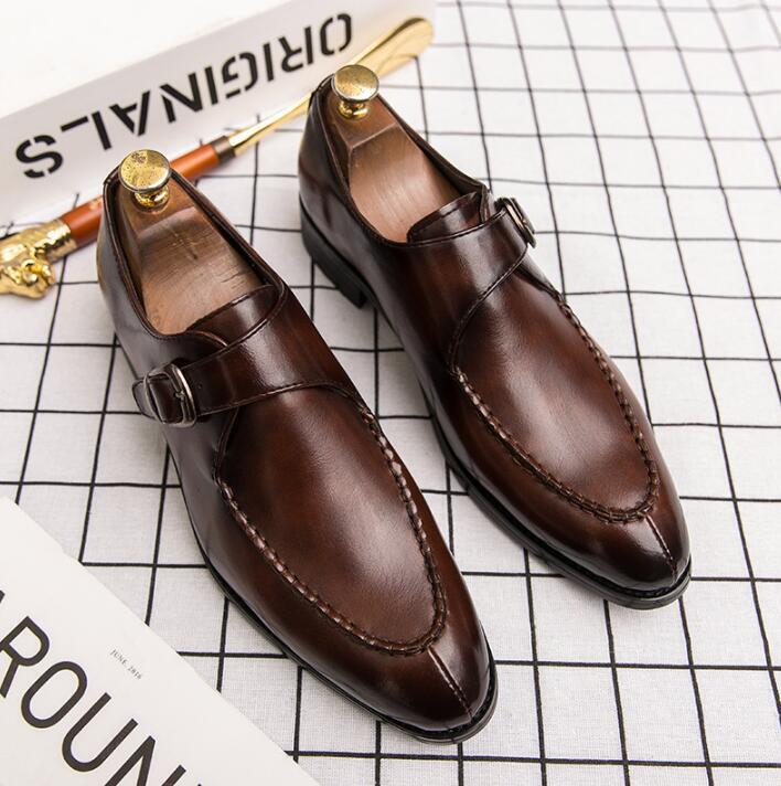 - 新品ビジネスシューズ メンズ シューズ PU革靴 ロングノーズ 紳士靴 オシャレ レースアップ ブラウン 25.5cmお色選択可