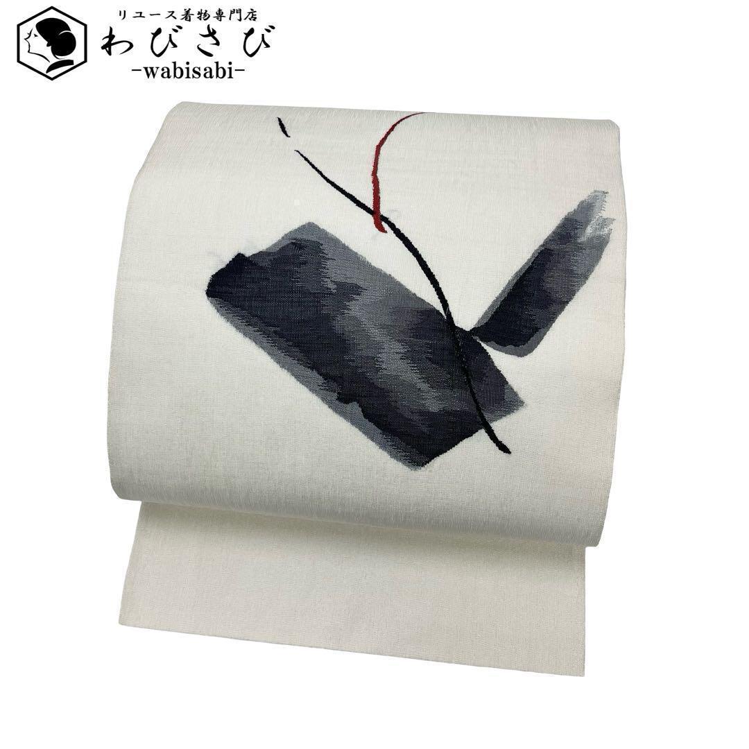 > 袋帯 西陣聚楽 白と黒のハーモニー 夢彩 抽象模様 乳白色 O-3638 着物 きもの kimono 和服 和装 中古 リサイクル着物 【送料無料】