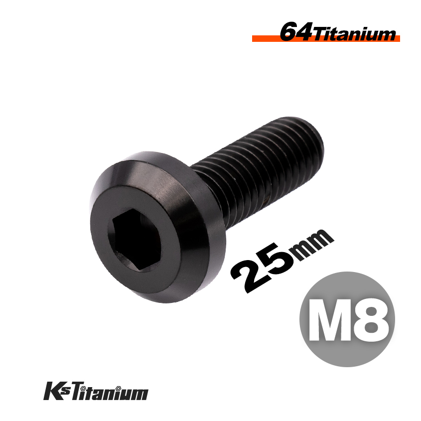 > チタンボルト M8×25 全ネジ P1.25 テーパーヘッド ボタンボルト ブラック 1本 64チタン M8 バイク レストア パーツ