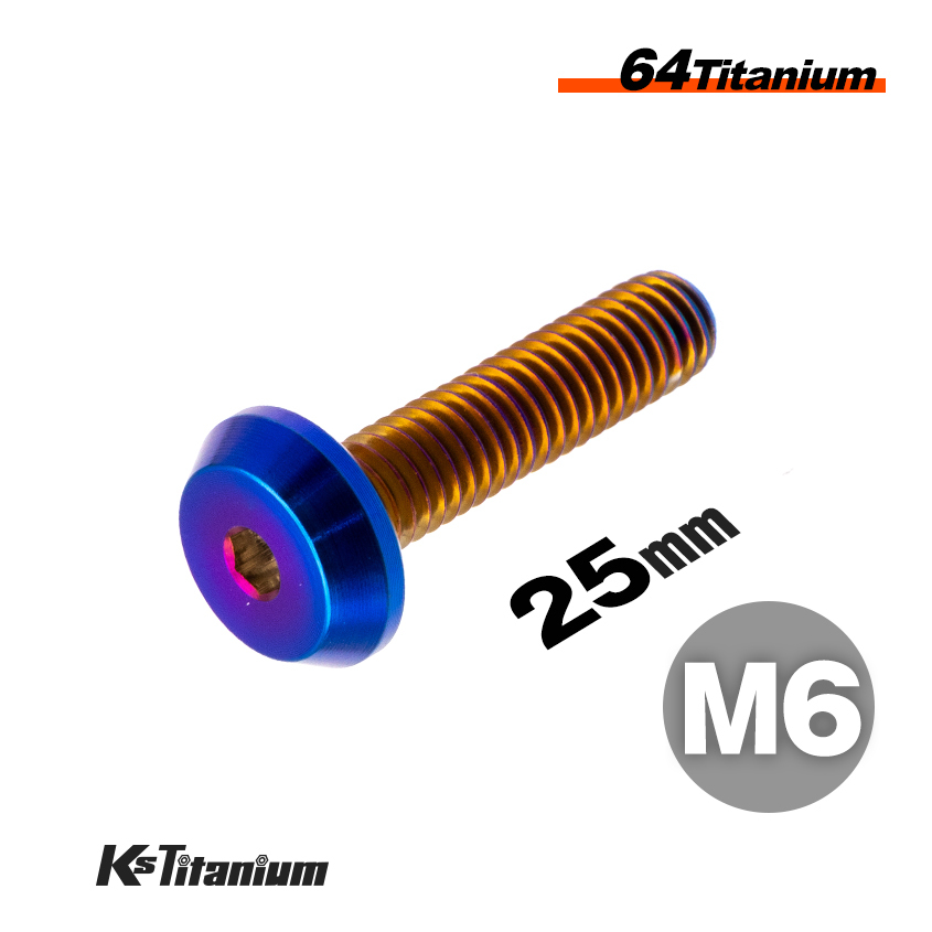 > チタンボルト M6×25 全ネジ P1.0 テーパーヘッド ボタンボルト 焼き色 1本売り 64チタン M6 バイク レストア パーツ