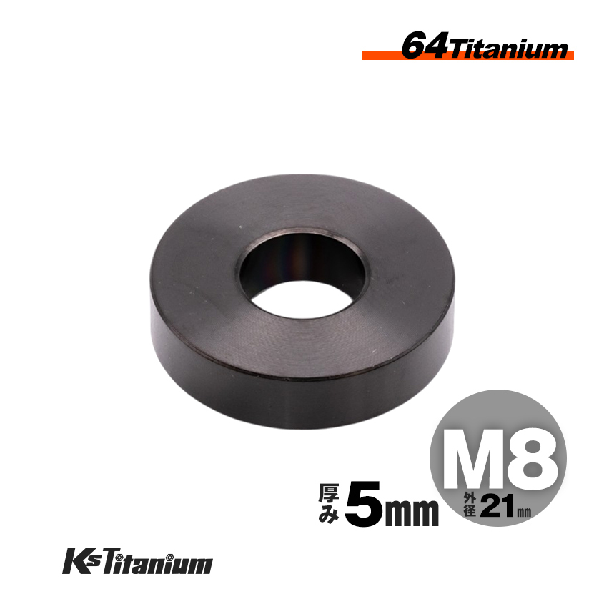 - チタン製 カラー スペーサー M8×21 5mm厚 ブラック 1個売り チタン ワッシャー レストア カスタム ドレスアップ 隙間調整
