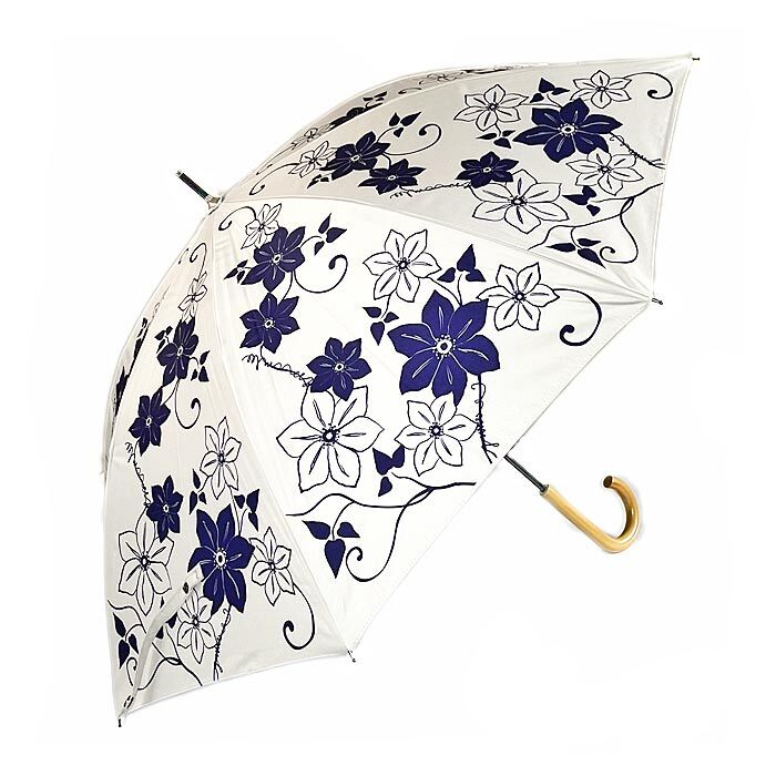 - 百花涼藍 晴雨兼用傘 鉄線花 和風日傘 テッセン柄 晴雨兼用 長傘 UVコート加工 紫外線カット 浴衣に合う傘 紫外線遮蔽 遮光・遮熱