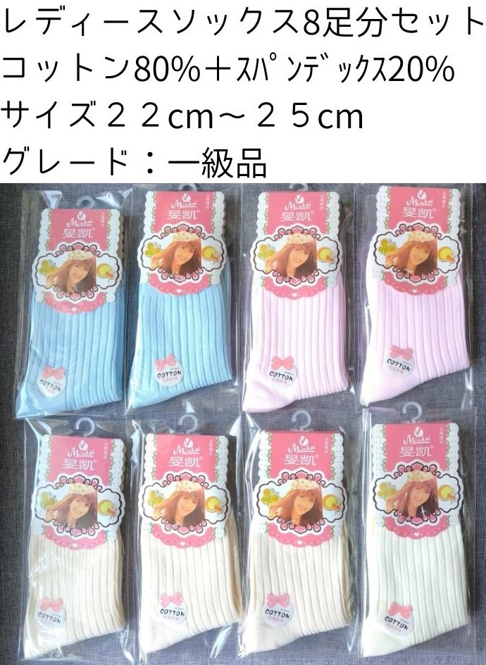 - 【レディース 一級品 靴下 8個セット】 個梱包 22cm~25cm コットン80%+スパンデックス20% ◎◎