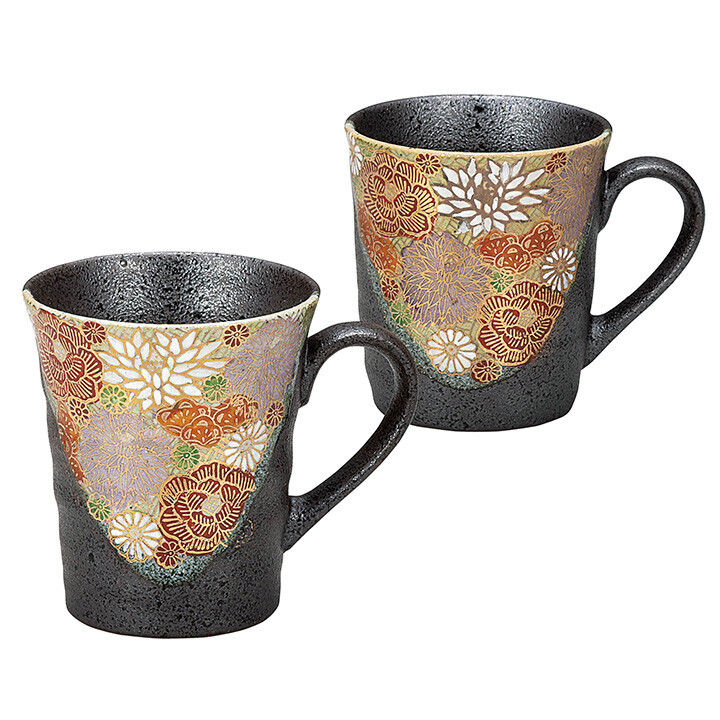 - 九谷焼! ☆花詰・ペアマグカップ☆ K9-1046 新品 茶器 コーヒー 紅茶 ミルク ラテ エスプレッソ カプチーノ ギフト