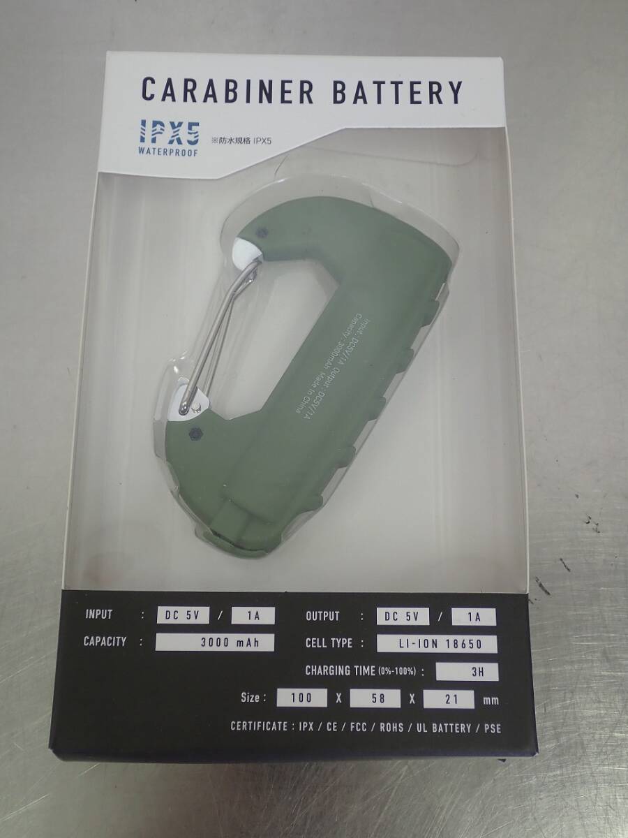 - 管132■カーキ④エルコミューン EL COMMUN CRB-002 カラビナバッテリー 3000mAh キャンプ アウトドア フェス 携帯バッテリー■未使用