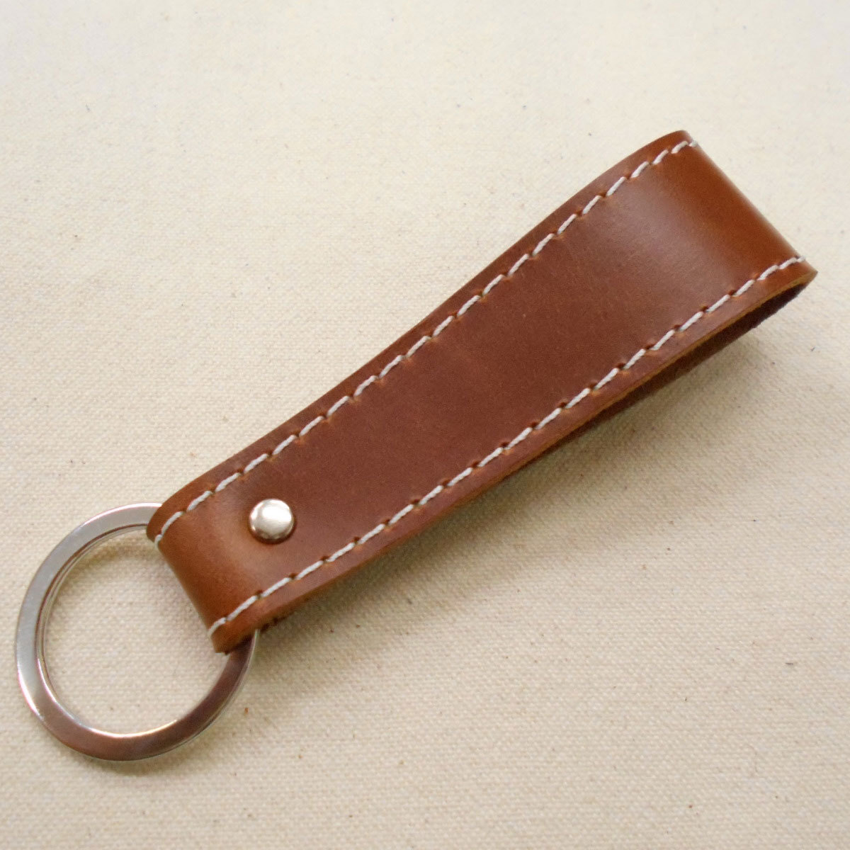 - 本革 キーホルダー ステッチ ベルトループ /ブラウン/キーリング ホルダー 革 レザー メンズ レディース 車 バイク