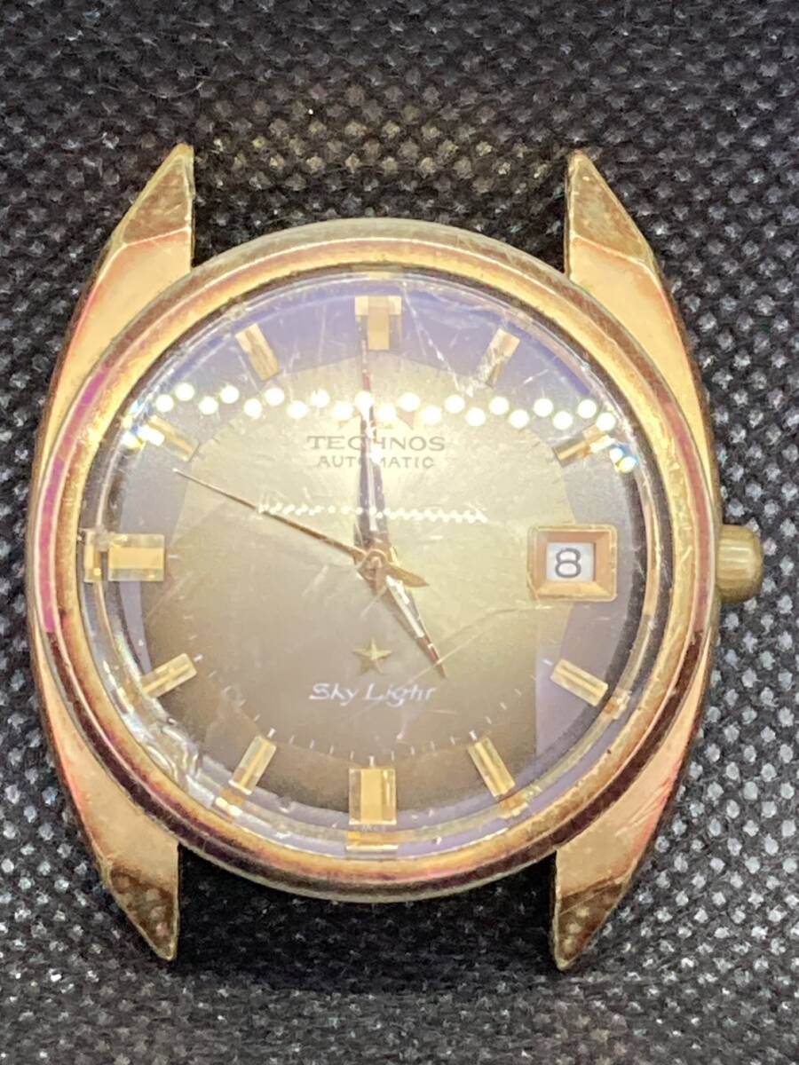 > TECHNOS テクノス Sky Light アンティーク 腕時計 黒 金 ブラック ゴールド ベルトなし 81180 GOLD FILLED 620 不動 現状品