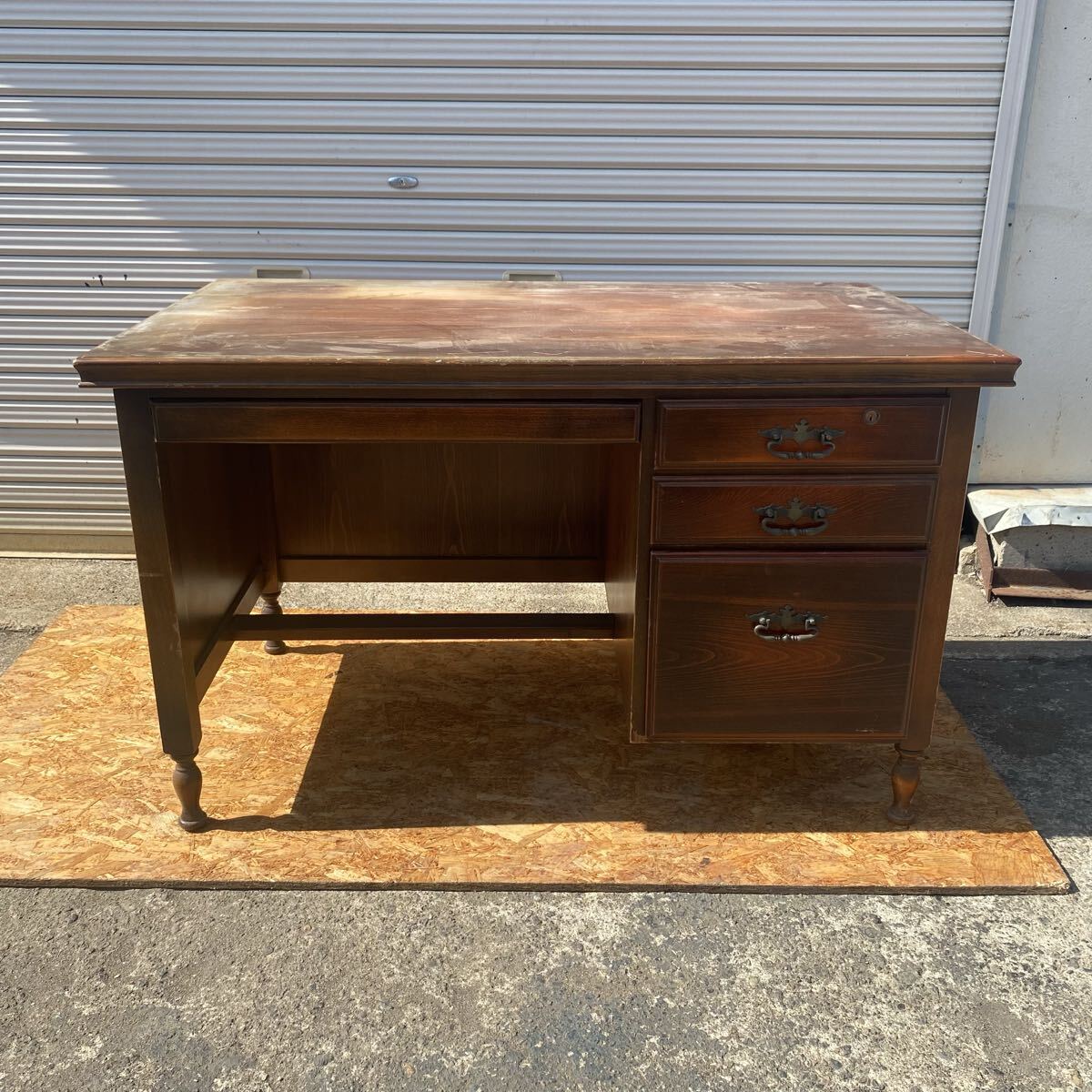 - M0902707B カリモク家具 コロニアルシリーズ 木製デスク 木製 デスク 机 テーブル ビンテージ アンティーク 鍵なし 当時物 中古品 現状品