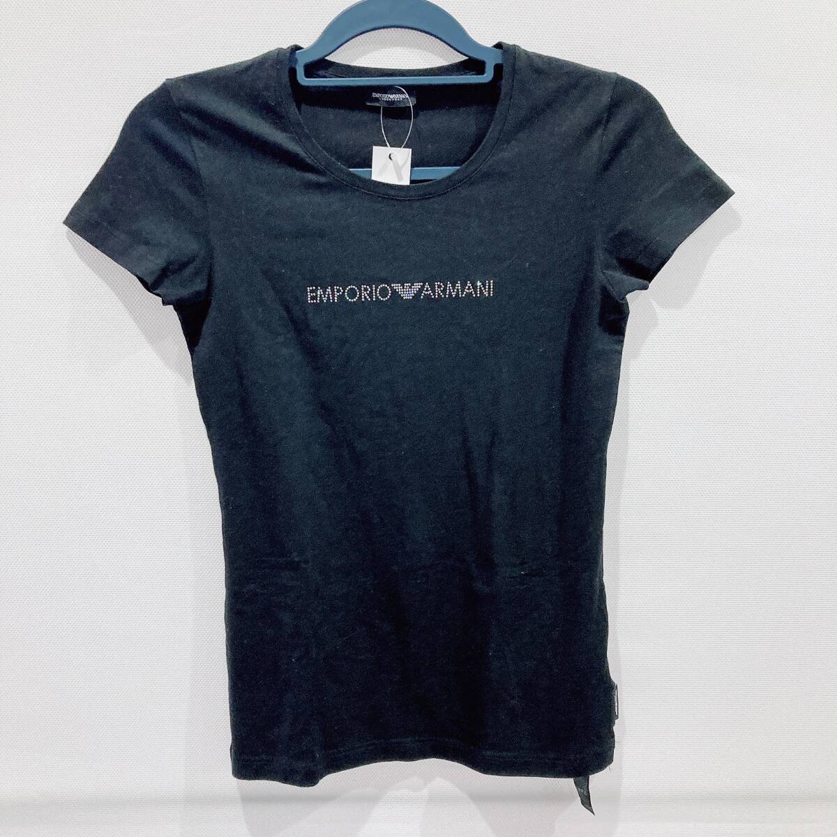 > Y502○ EMPORIO ARMANI エンポリオアルマーニ レディース 半袖 ブラック 黒 ラインストーン スタッズ 夏 XS Tシャツ