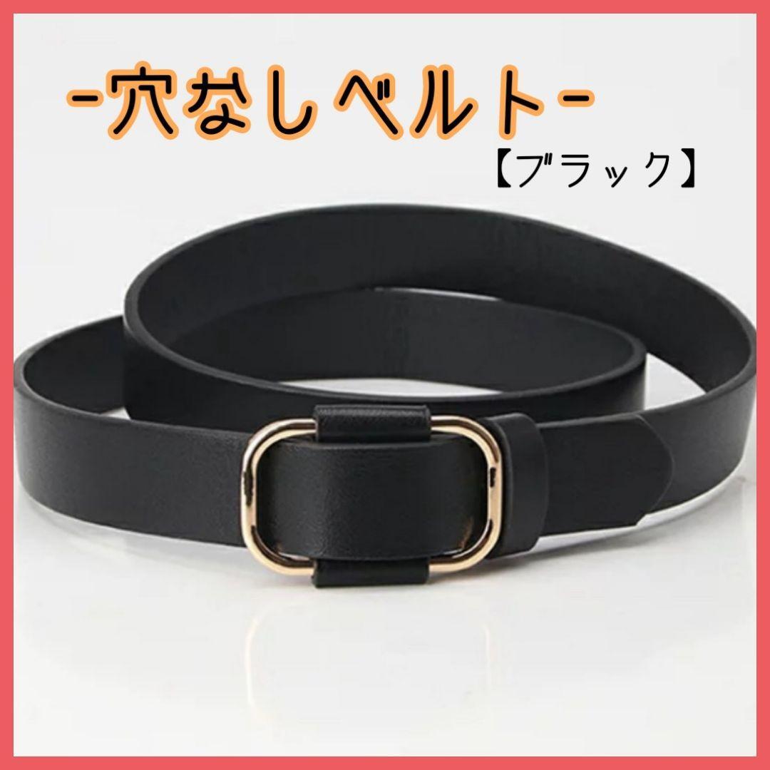 - 穴なしベルト シンプル スクエア バックル ユニセックス 黒 ブラック 無段階