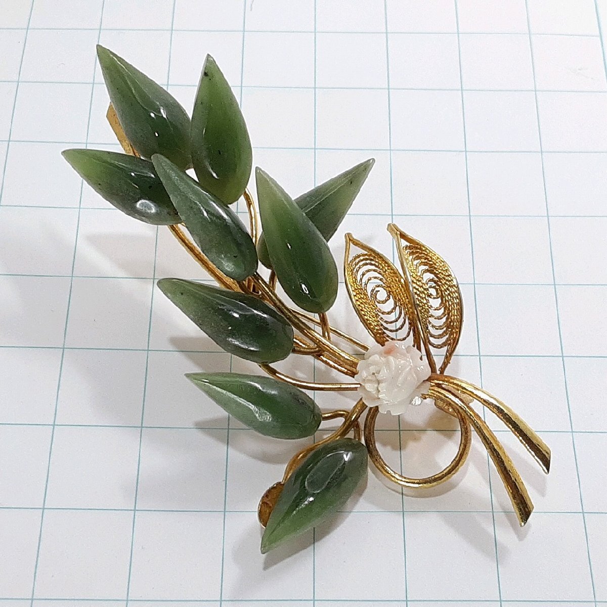 - 送料無料)ビンテージ☆笹モチーフ☆アンティーク ブローチ A31823