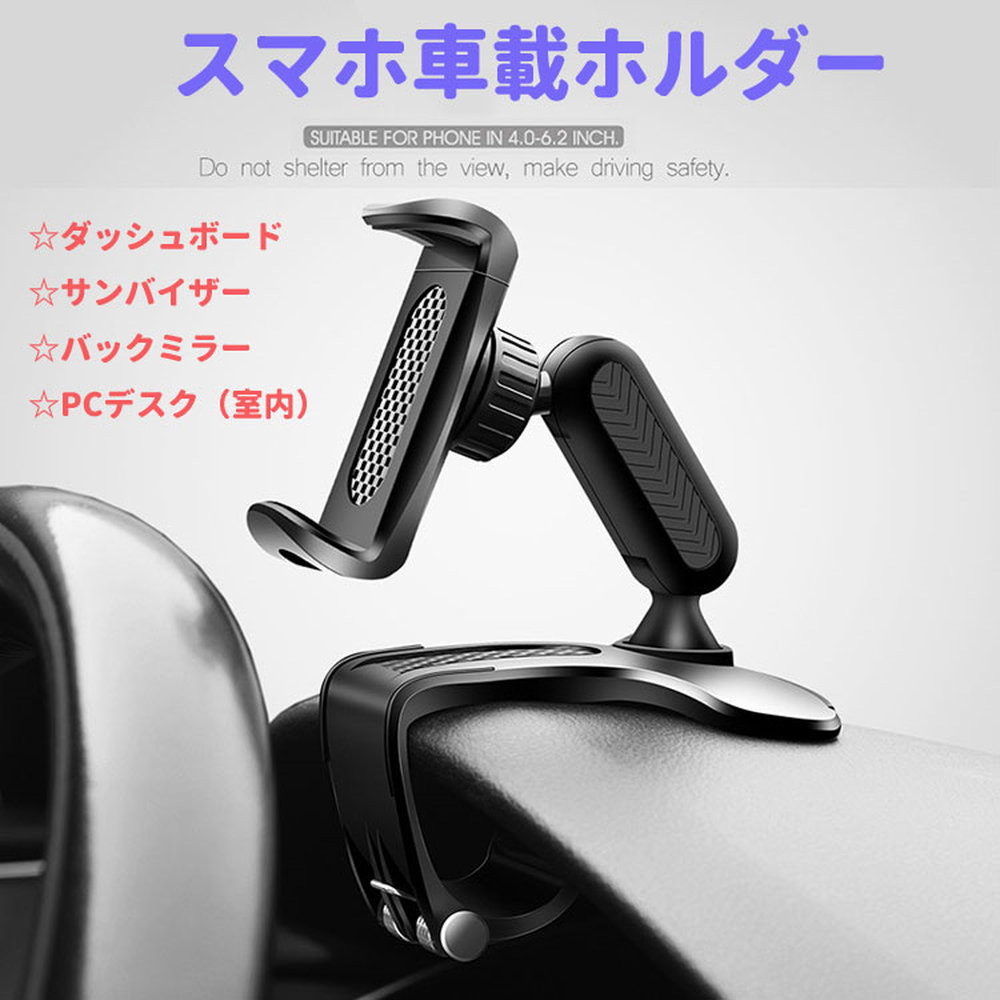 - スマホ車載ホルダー クリップ式 横縦角度調整 ダッシュボードやサンバイザーなどに取付可能 4~7インチのスマホ対応 GWMCH202D