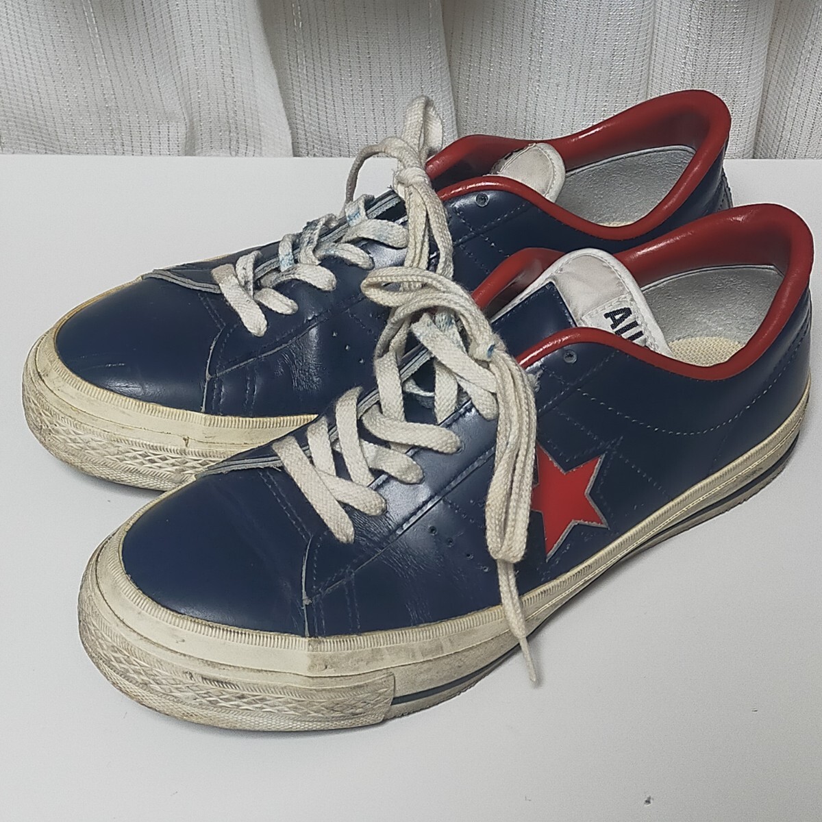 - CONVERSE コンバース ワンスター レザー スニーカー 希少カラー 日本製 JAPAN 7 25.5cm ネイビー×レッド