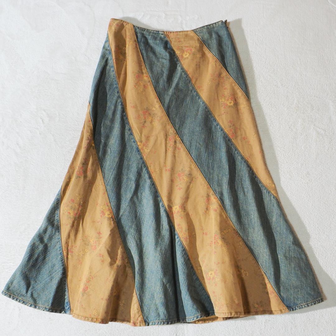 > ローラアシュレイ LAURA ASHLEY フレアスカート デニム切替 コットン100% レディース9号