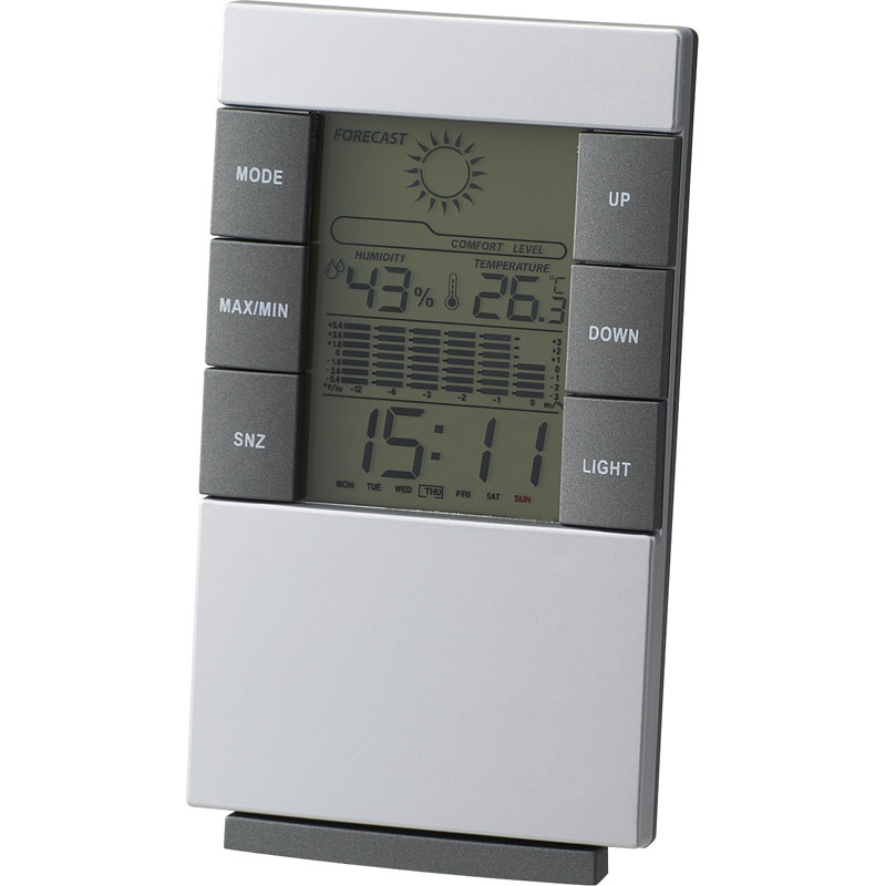 〇注意事項・送料800円が販売価格に含まれています・お取り寄せ商品です。弊社にて手配後、メーカー・卸業者からの直送になります。・まれにメーカー欠品、出荷遅延等が発生致します。問題発生時は別途メールにてご連絡致します。・配送方法の指定、日時指定、置き配、ギフト対応、他商品との同梱配送などは対応できません。・まとめ買いや複数購入の場合は通常より発送に時間が掛かる場合がございます・複数個口の場合、2階以上への搬入ができない場合があります。(その場合は1階での受け渡しとなります)・大型連休、お盆、年末年始などは発送をお休みさせていただく場合がございます・メーカー都合により、パッケージは予告なく変更される場合がございます・梱包用のダンボールはリサイクル品を使用させていただきます。・注文に関するご連絡(注文確定通知・発送通知など)はメールでご案内させていただきます※商品ページの内容について、少しでもご不明な点などがございましたら購入前に一度ご連絡ください〇商品説明あらゆるギフトシーンにおすすめです!最新12時間の気温の移り変わりグラフまで付いた見やすい多機能時計です。・時計・アラーム・スヌーズ・温度計・湿度計・天気予報・12時間気温変化グラフ・カレンダー・バックライト〇商品仕様●内容:140×80×40mm規格●化粧箱入(85×147×48mm) 134g 単4電池2個使用(別売)●材質:ABS樹脂●加工地:中国(出典:株式会社 八大)