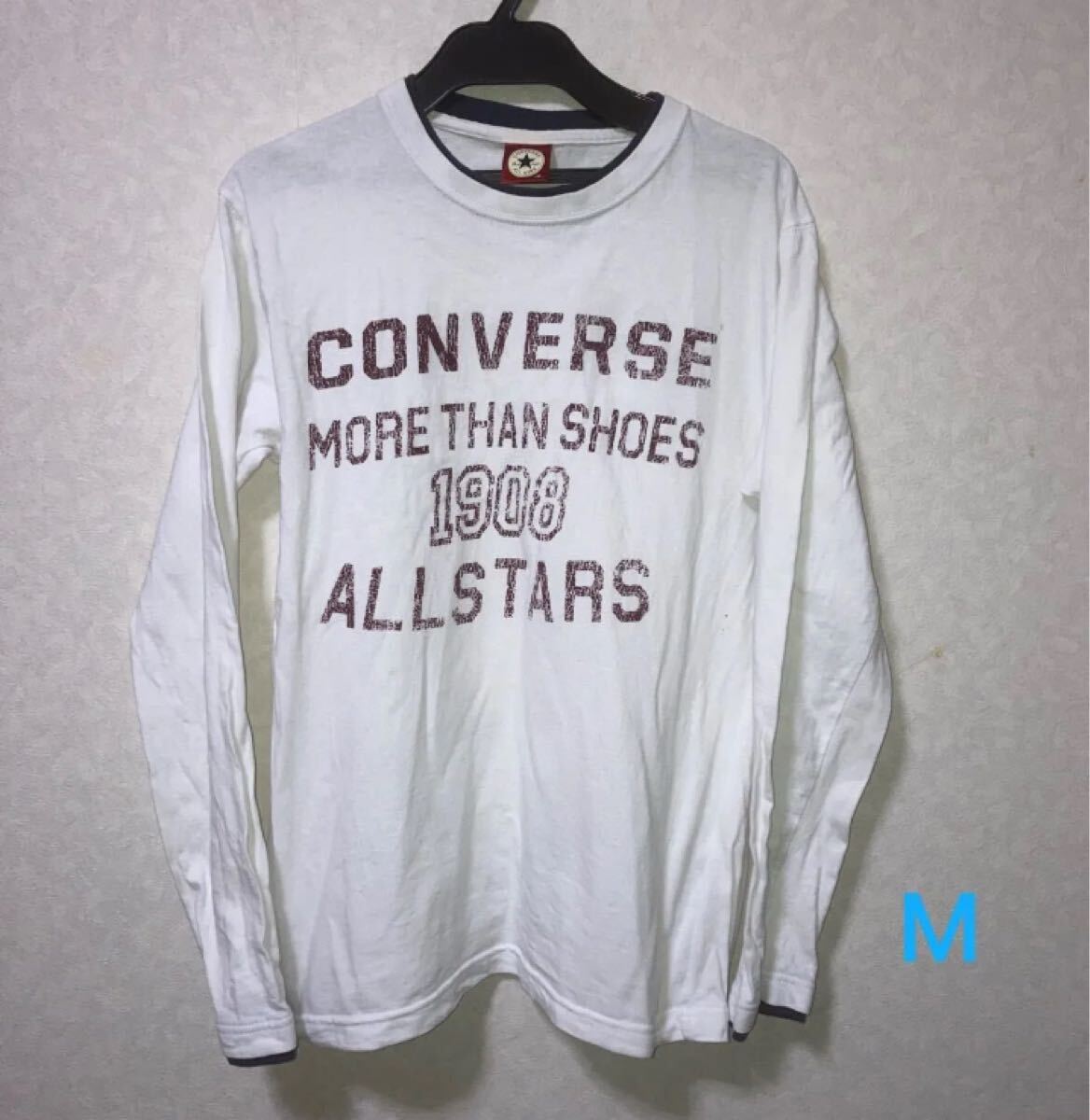 - converse 長袖Tシャツ M ロンT 長袖 綿100% トレーナー ホワイト