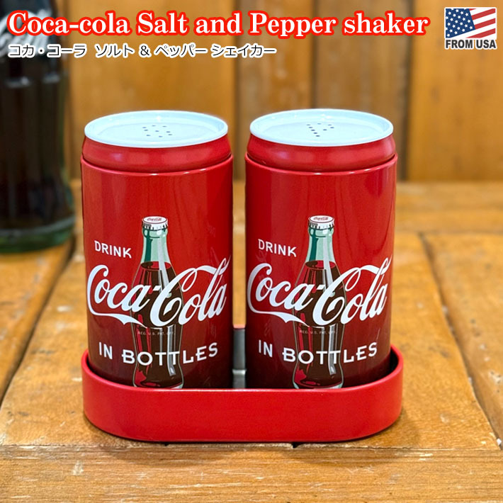 - コカ・コーラ ソルト&ペッパーシェーカー ビンデザイン トレイ付き レッド 缶コーラ 塩 コショウ 調味料入れ ダイニング