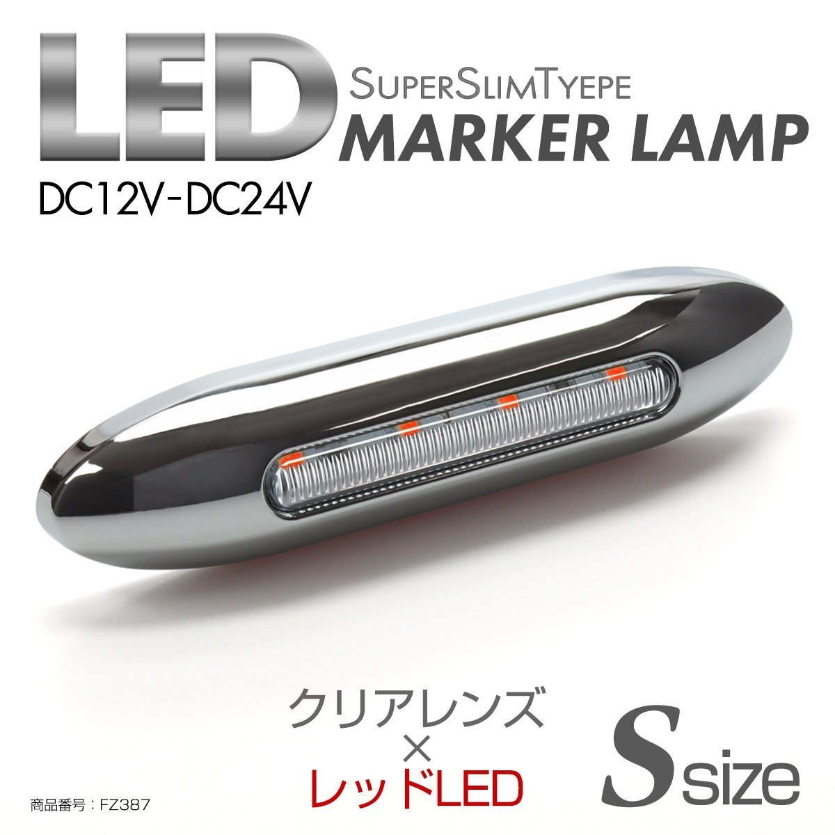 > LED サイドマーカー クリアレンズ レッドLED Sサイズ 24V 12V兼用 メッキカバー付き スリムタイプ FZ387