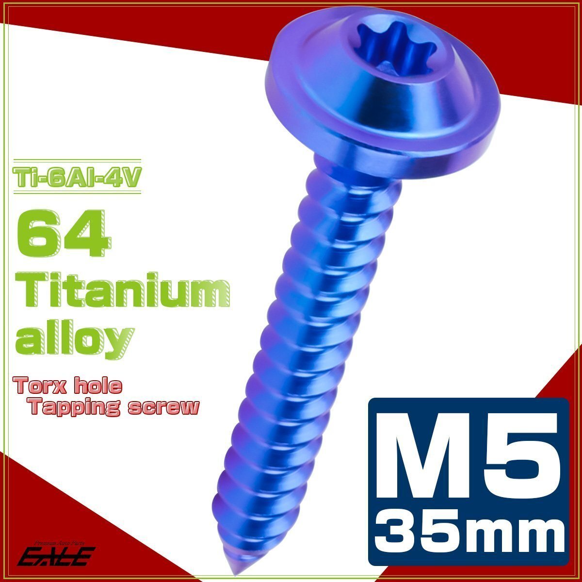 - 64チタン M5×35mm タッピングネジ トルクス穴 フランジ付き ビス ブルー JA1290
