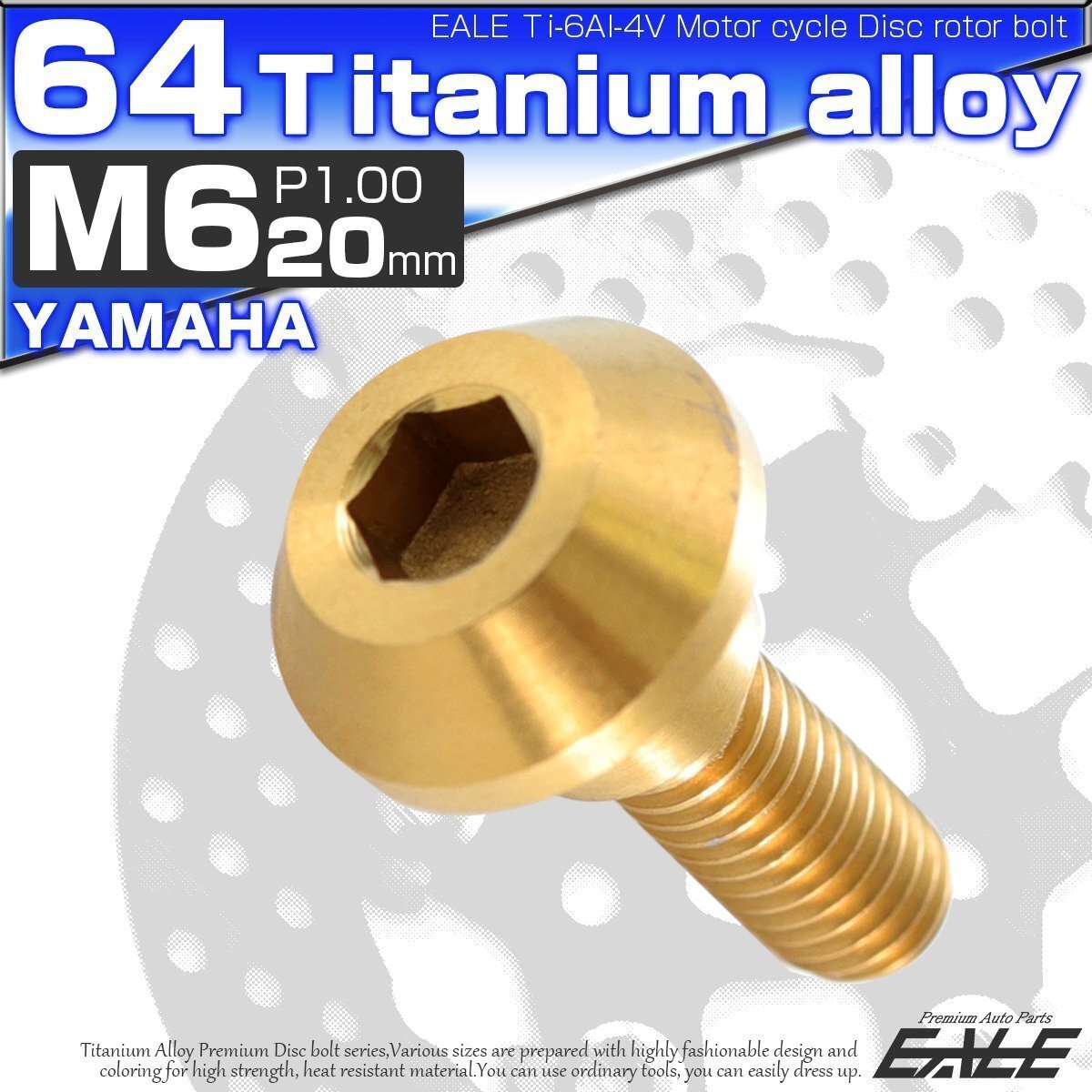 > 64チタン製 ヤマハ用 M6×20mm P1.0 ブレーキ ディスク ローター ボルト ゴールド チタンボルト Ti6Al-4V JA077