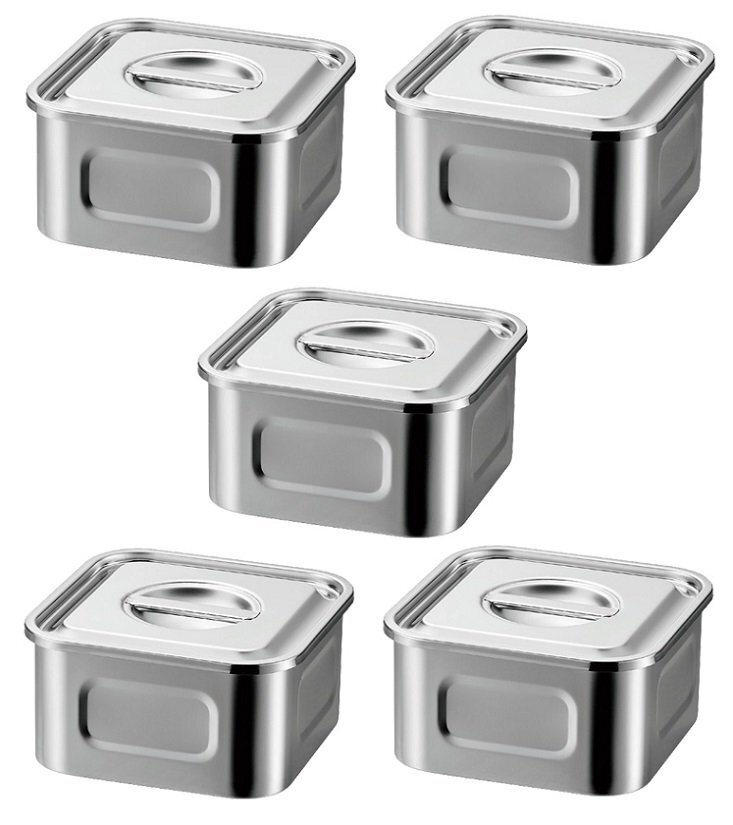 - ☆キッチンポット浅型角取手無約10.5X10.5cm蓋ツマミ付引掛金具付5個蓋の置き場に困らない引掛金具付の蓋ステンレス18-8日本