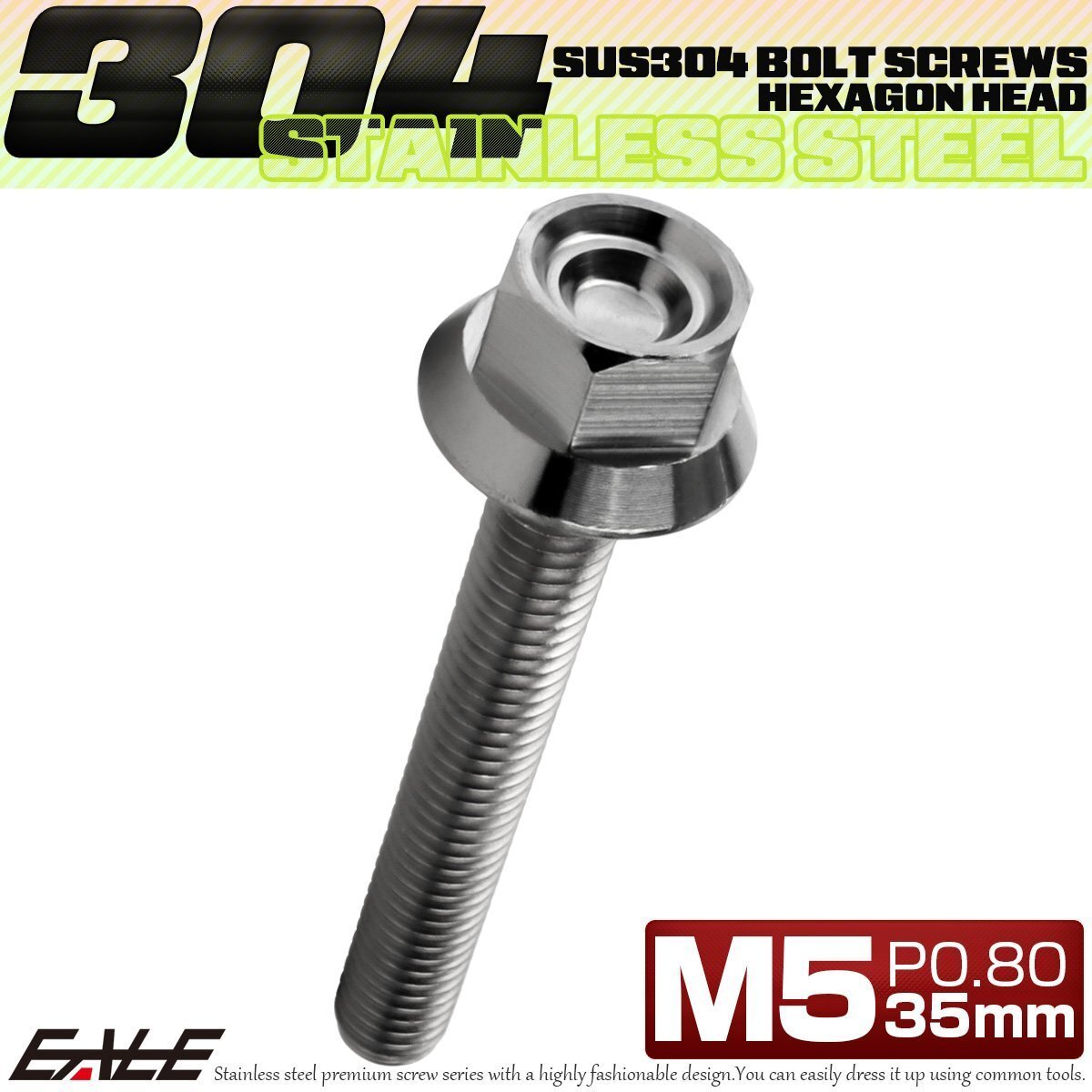 - M5×35mm P0.8 フランジ付き 六角ボルト カスタムヘッド SUS304 ステンレス シルバー TB1233