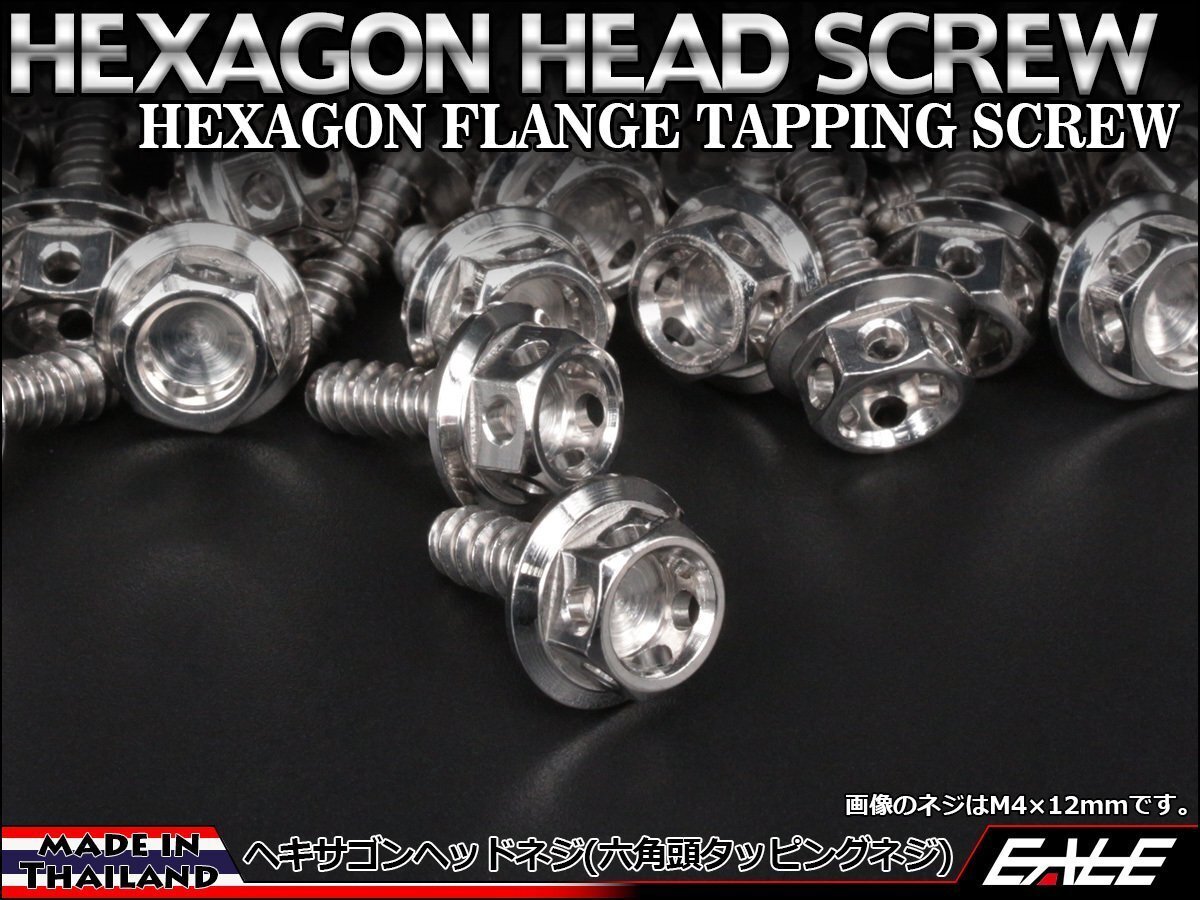 > M5×16mm SUSステンレス ヘキサゴンヘッドネジ タッピングネジ 六角頭 フランジ カウルやパネルなどに シルバー TC0003