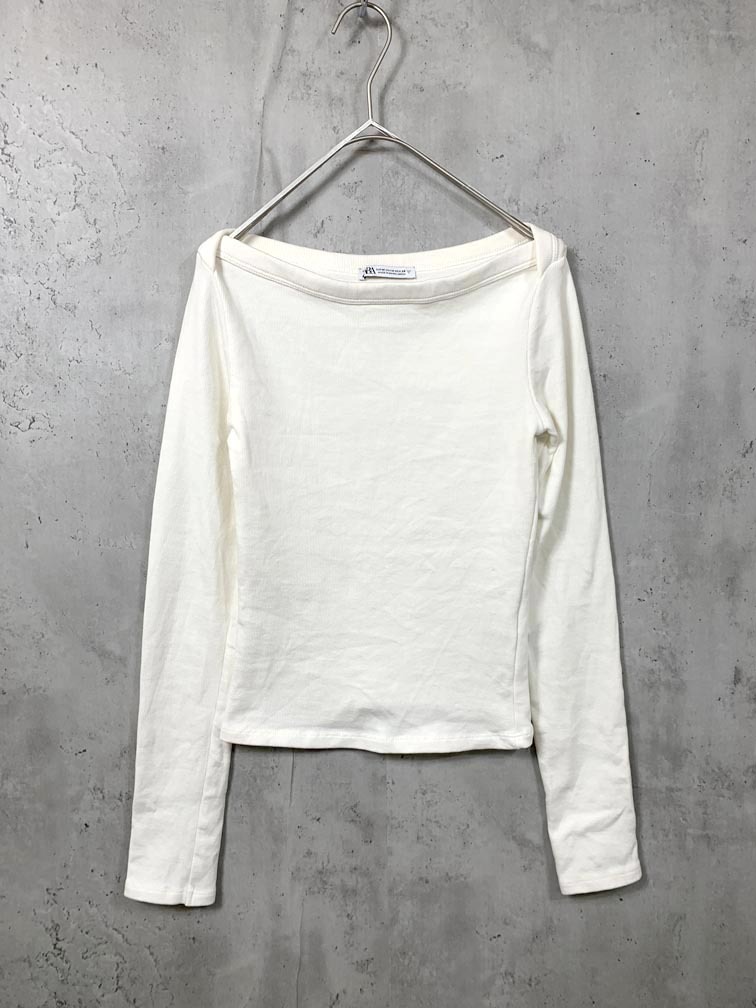 - ゆうパケットOK ZARA ザラ 4424/814/251 リブボートネック Tシャツ sizeM/白 ■■