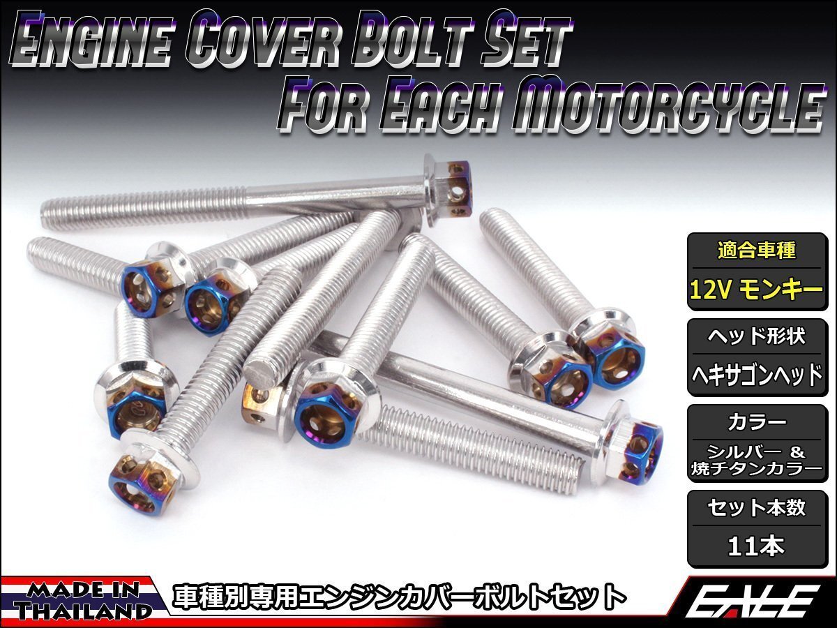 > 12Vモンキー エンジンカバー ボルト11本セット ステンレス製フランジ付六角ボルト使用 CTCヘキサゴンヘッド シルバー&焼チタンカラーTB6109