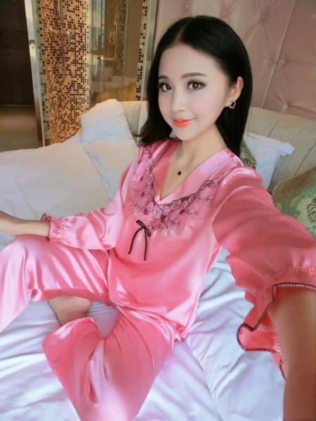 - 送料無料 匿名 長袖 シルク 風 パジャマ ナイトウェア ピンクゴールド M L